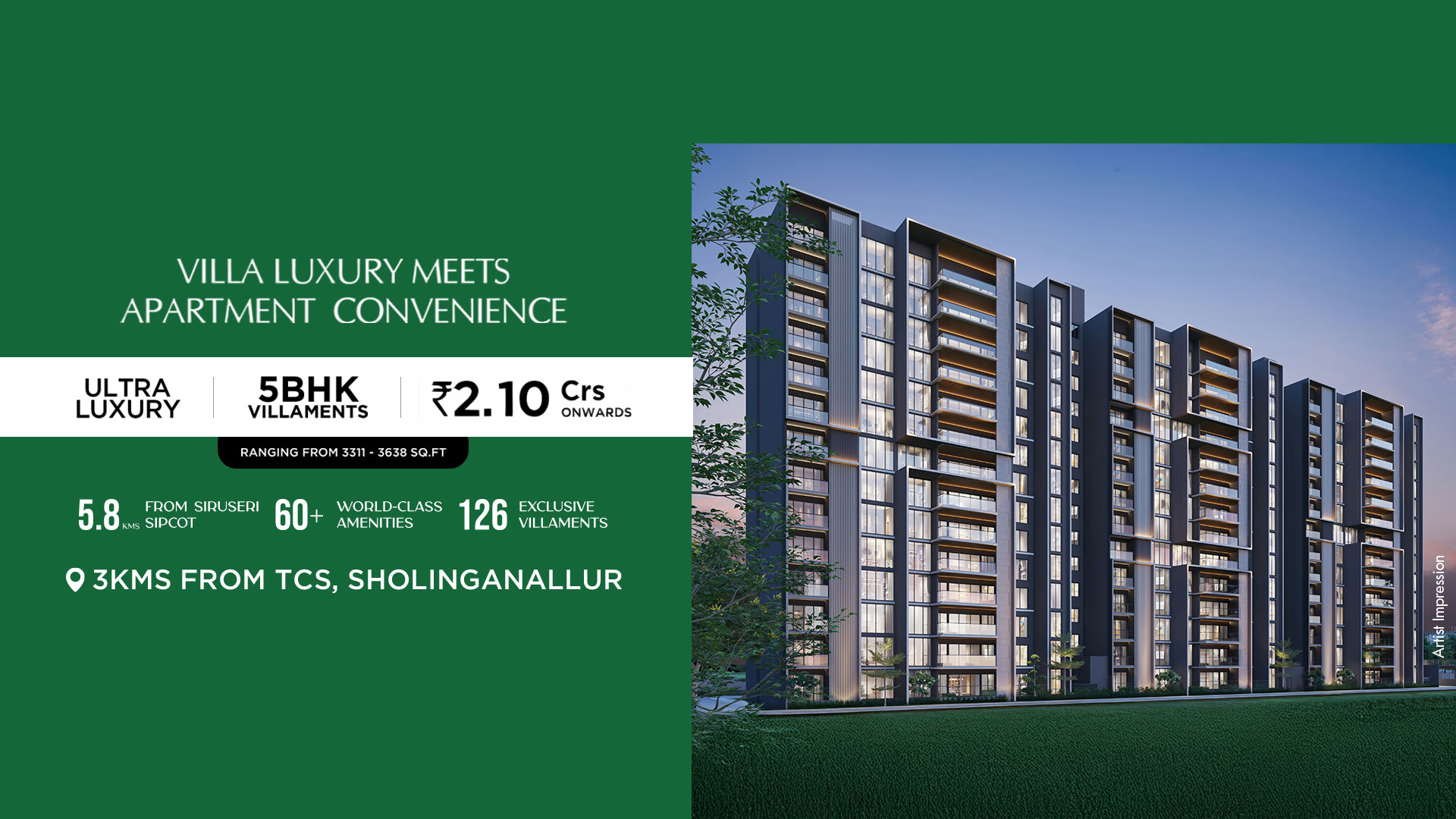 - Opulent apartment towers featuring 126 exclusive floor villas, spanning 3.0 acres.
